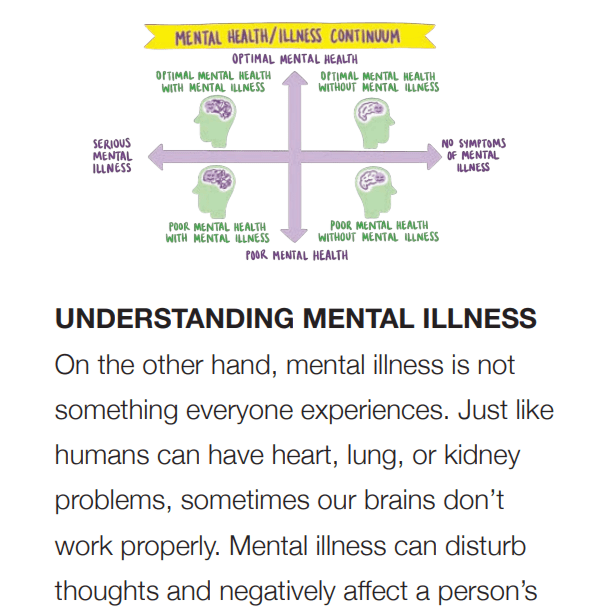 The guidebook is not meant for youth to diagnose themselves or others, but rather to be a resource that helps start conversations around mental health and addiction. In order to be accessible to all transition-age youth, the guidebook is written to provide basic information about mental health, how to have conversations with peers, and coping strategies, in a way that any young person can understand.